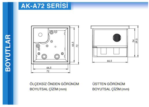 | Kontrol Paneli Kesiti (mm) | AK-V72: 66.5 x 66.5 cm , AK-V96: 90.5 x 90.5 cm |